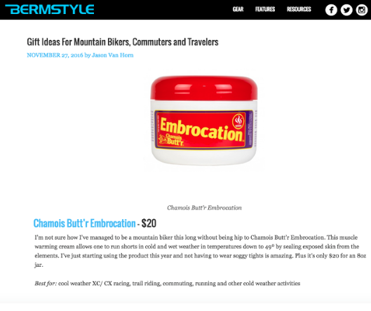 Nov 27, 2016 Bermstyle Features Chamois Butt'r To read read the full article, click here! Share Share on Facebook Tweet Tweet on Twitter Pin it Pin on Pinterest
