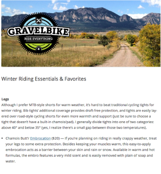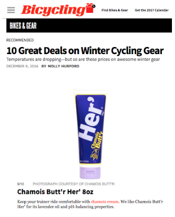 Dec 20, 2016 Bicycling Features Chamois Butt'r To read the full article, click here! Continue reading