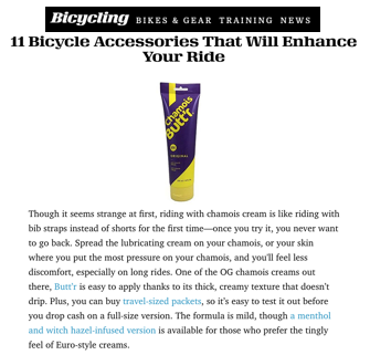 Sep 13, 2019 Bicycling features Chamois Butt'r as a favorite essential For full article click here Continue reading