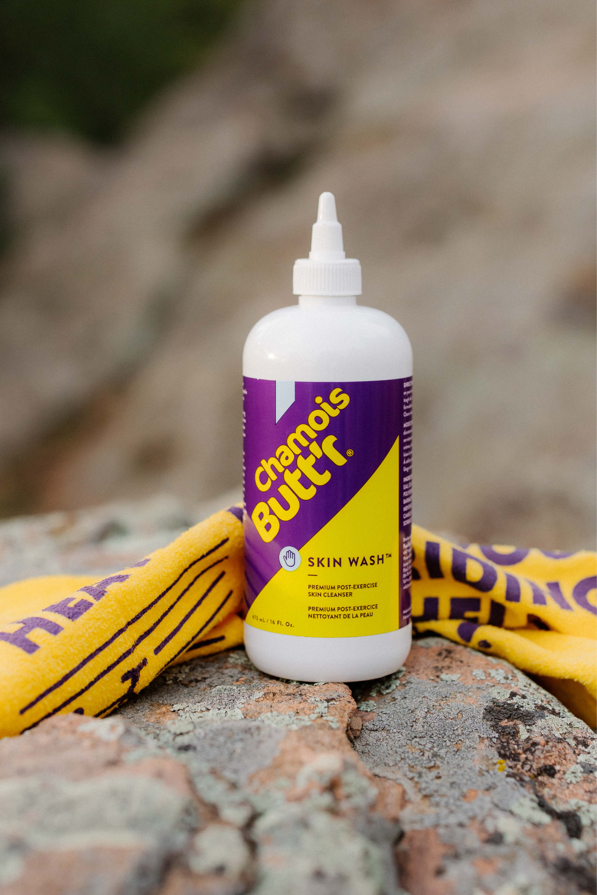 16 oz Chamois Butt’r Skin Wash. A gentle, no-rinse cleanser designed to remove sweat, grime, and chamois cream while soothing and refreshing your skin. Apply this skin cleanser any time after sweating. Ideal for post-ride or on-the-go cleanups.